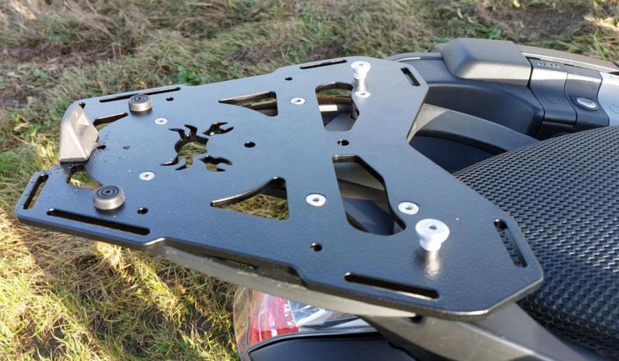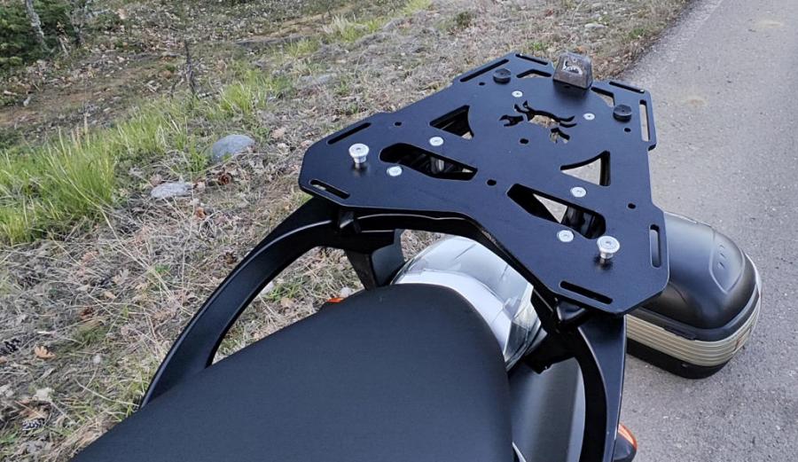 Designed to accommodate Givi/Kappa Monokey or Monolock top cases (separate mounting kit required as mentioned above), SW-Motech top box (with a proper fitting kit), 1 gal. - 1.75 gal. RotopaX fuel/water packs, Wolfman Luggage Tail bags, it's also a perfect solution to strap down a dry bag/u-bag/roll-bag & many more.