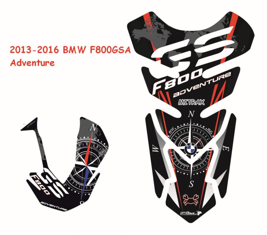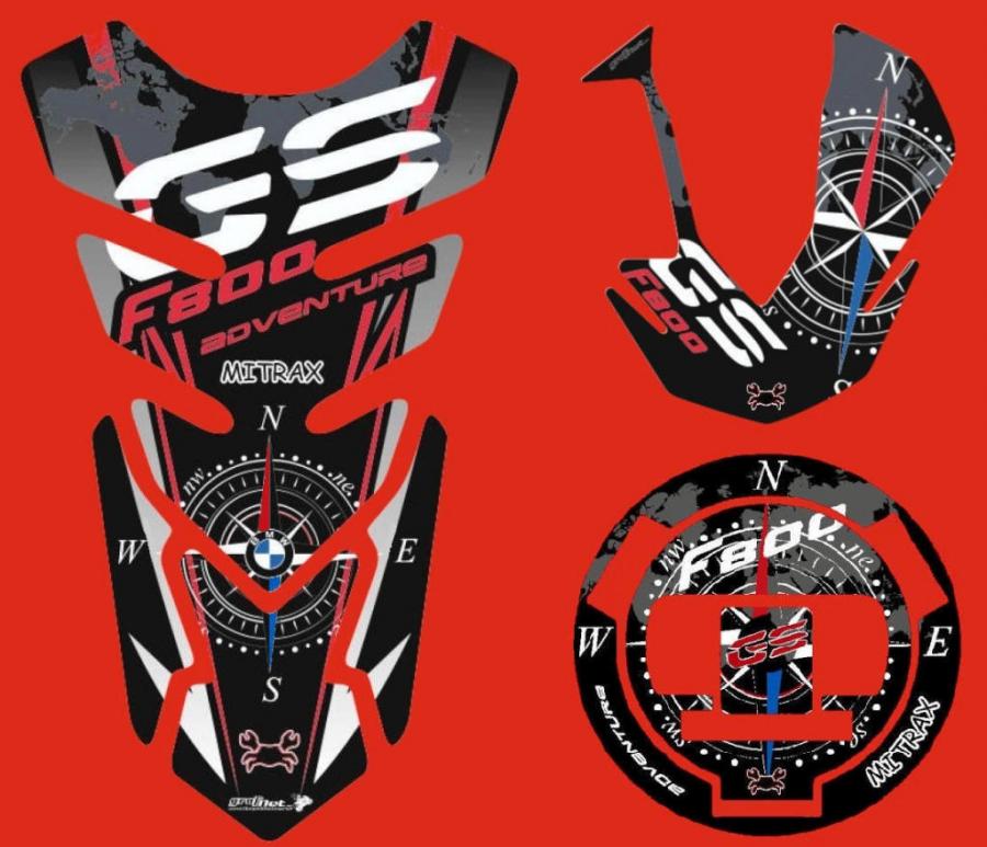 Mitrax tankpad, gascap and ignition protective stickers for 2013-2017 BMW F800GSA Adventure bikes. it fits all available 2017-2018