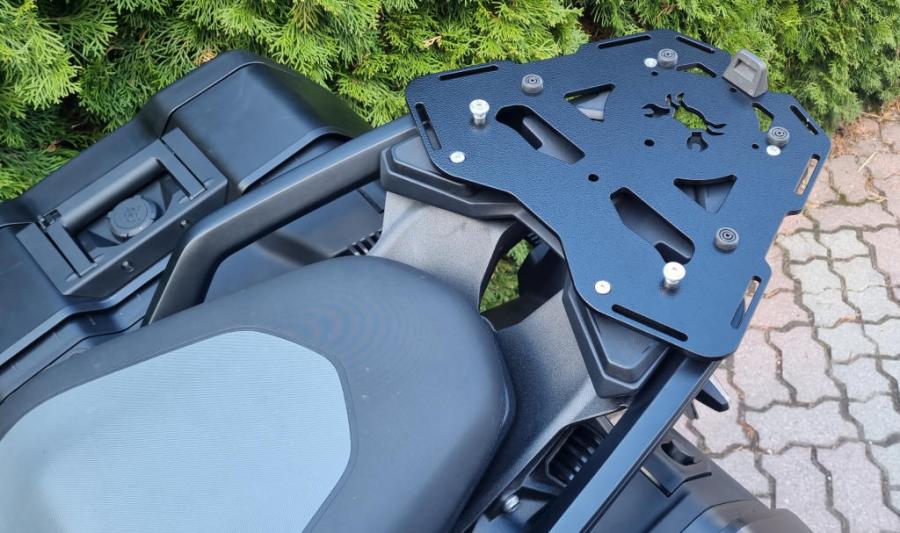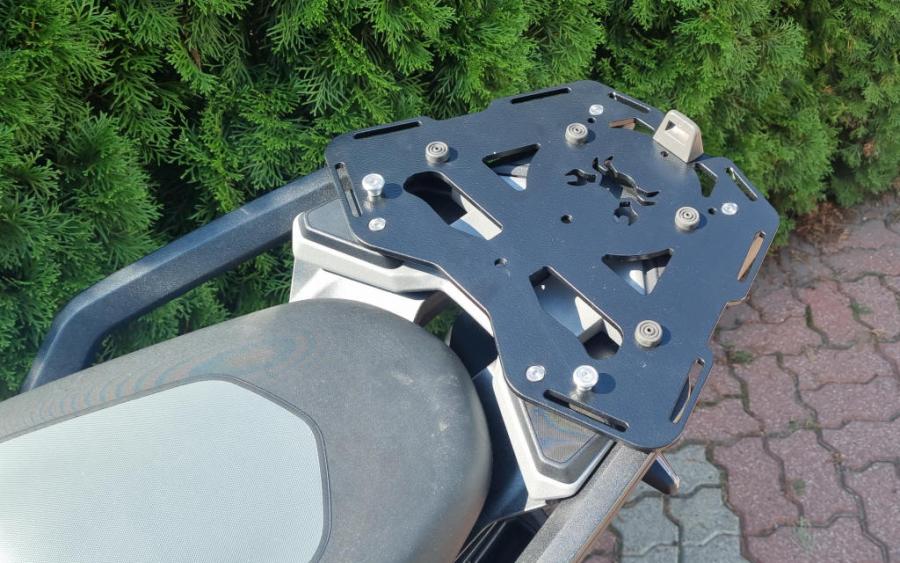 – Accepts SW-Motech TraX® Adventure top box ( T-RAY top boxes too). For TraX® top box you’ll need additional adapter kit ( Sw-Motech part #: GPT.00.152.20101/B) or SW-Motech Steel-Rack or Alu-Rack plate