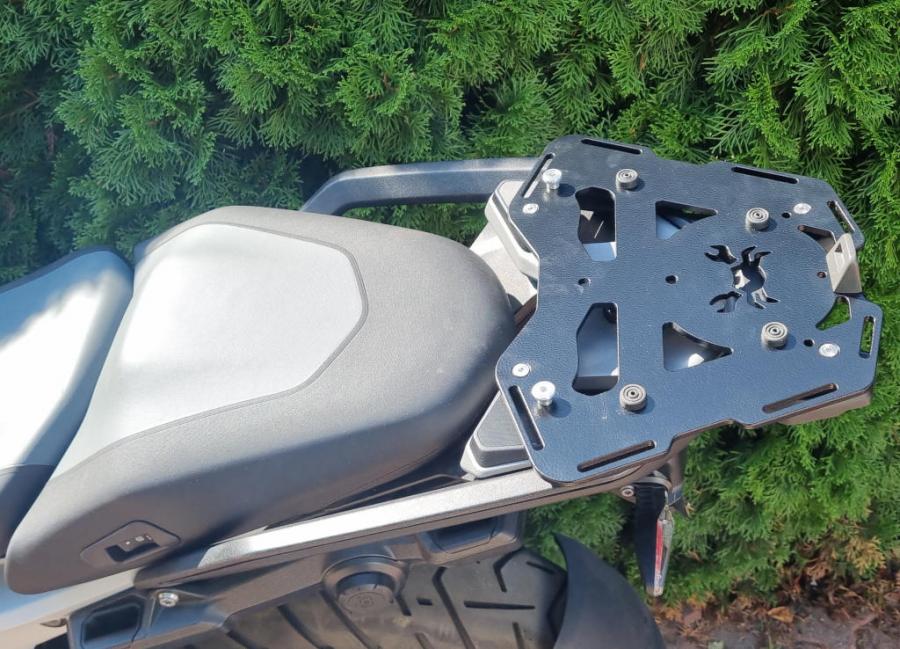 Please note: Accessory quick attachment kit (for use with Givi or Kappa Monokey/Monolock hard cases/top boxes) as shown in the images is not included with this product, however it's available as an add-on product for additional 100 PLN / 25 GBP / 30 EUR / 30 USD. Can also be used with or without Givi/Kappa/SW-Motech plastic or aluminium base mounting plate.