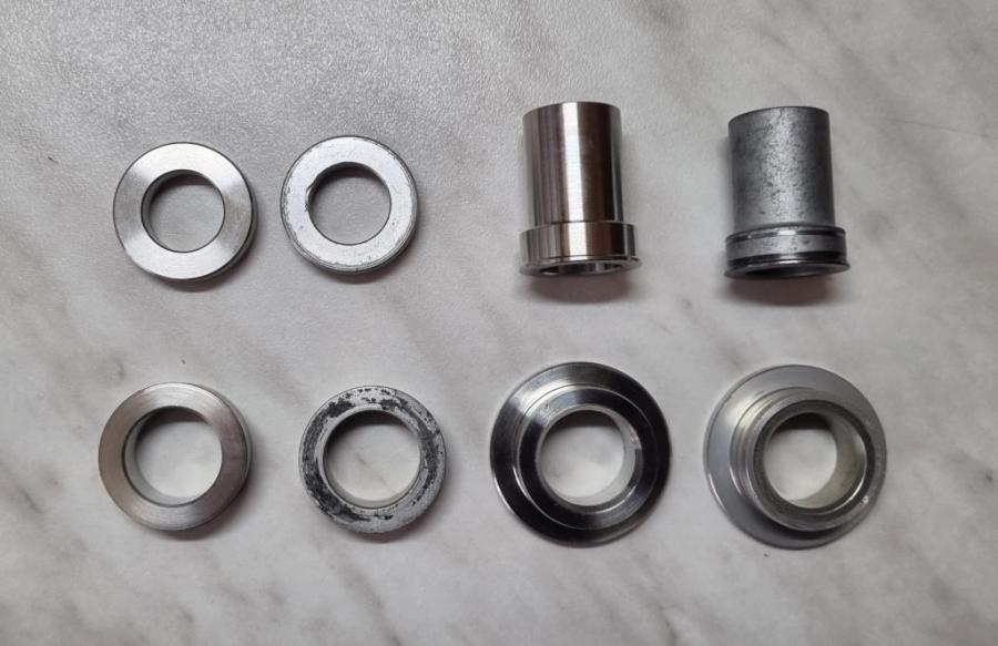 spacers).OEM aluminium wheel spacers (as example photos above) are vulnerable to damage due to the sand or dust acting on their surface causing water to penetrate the bearings. Mitrax wheel spacers are CNC made from high grade stainless steel & will last forever, no more worries and failed rusty bearings for years.