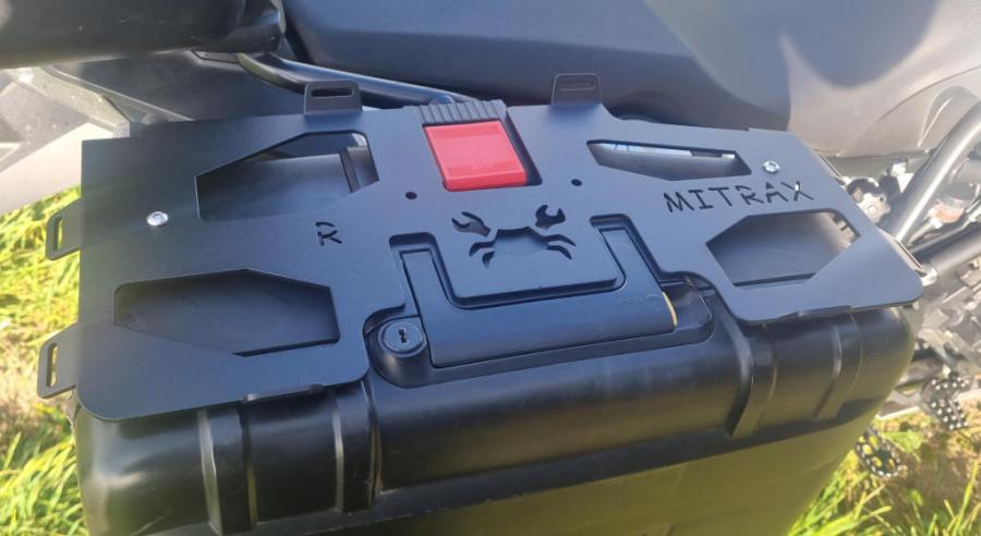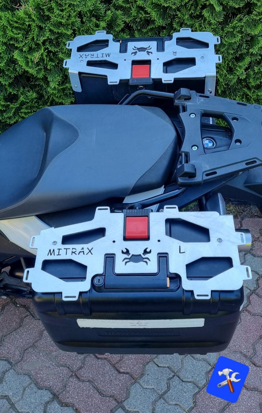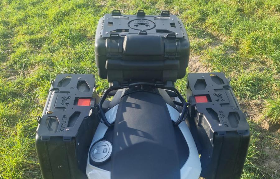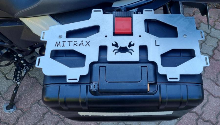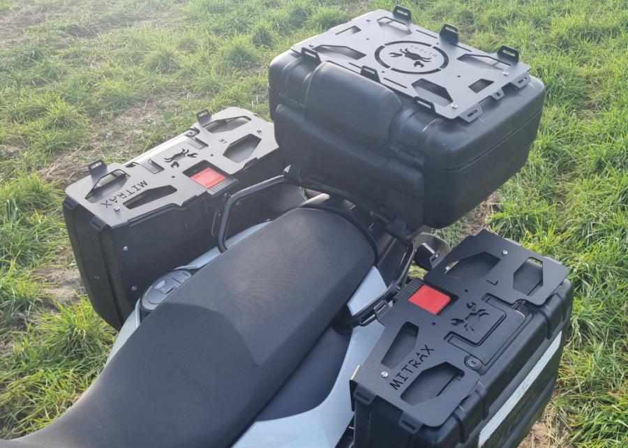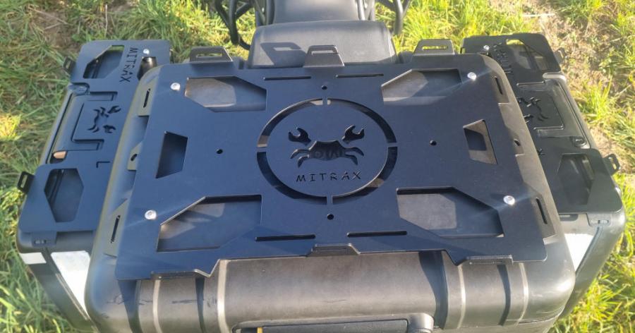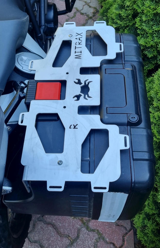 Allow to mount a tent, sleeping bag or matress and save space in your Vario luggage system. Mitrax top plates are made of aluminium, grey or black color at your choice, come with all fitting hardware, you only need to drill few M6 holes in your side and top boxes. If you want only top plate or only side plates, please send me an email.